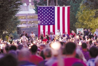 8月4日,在美国俄亥俄州代顿市,人们为枪击事件遇难者举行悼念活动。美国俄亥俄州代顿市市长娜恩·惠利4日清晨通报说,当天凌晨该市发生的枪击事件目前已造成包括一名枪手在内的10人死亡,另有26人受伤。 新华社记者 刘杰 摄