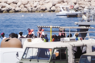 8月4日,非法移民在马耳他弗洛里亚纳的码头上岸。当日,40名非法移民在马耳他弗洛里亚纳上岸。船上非法移民主要是西非人,他们自称来自喀麦隆、加纳、利比里亚、多哥和马里等国。 新华社发(乔纳森·博格 摄)