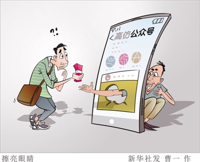 看病、开卡、办事,上微信公众号预约一下,近年来,越来越多的人习惯在微信公众号上处理事务。“新华视点”记者调查发现,骗子们如今开始利用仿冒官方微信公众号进行诈骗,有的通过取“高仿名”冒充正规机构,有的通过造假、借用他人工商执照、法人信息注册微信公众号实施诈骗。 新华社发 曹一 作
