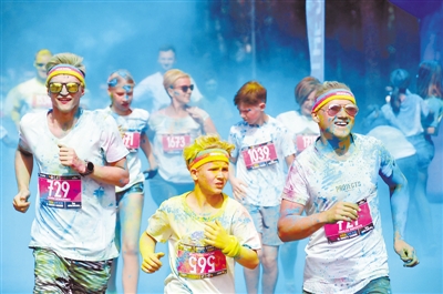 8月18日,在拉脱维亚海滨小镇尤尔马拉,人们参加“彩色跑”活动。 新华社发(亚尼斯摄)