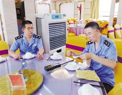 近来,永定对饭店、酒家、单位食堂等餐饮单位的食品存储、消毒等环节展开检查,按照餐具消毒行业标准,严格检查,共检测餐饮器具12户次,检测出一户的餐具细菌总数超标,责令重新消毒。图为执法人员在检测餐具。通讯员 郑素梅 谢易玲 翁子华 摄