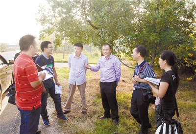 通讯员队伍的发展壮大,为报社采编工作提供了有益补充。图为范启麟总编辑(右二)带领采访组与长汀县通讯员陈天长同志(右四)一道采访种粮大户傅木清。 记者 郭亦斌 摄