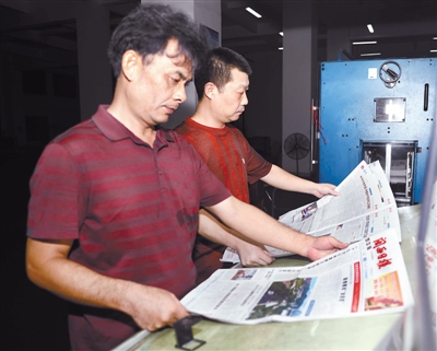 技术员对印制报样校版校色。