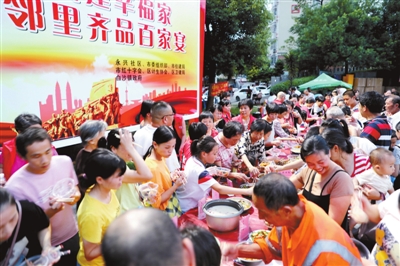 11日下午,新罗区东城街道永兴社区联合基层党建指导小组、共建单位,在社区举办了第二届“党群共建幸福家 邻里齐品百家宴”中秋百家宴活动。居民们拿出自己的烹饪绝活,精心烹制菜肴。大家围坐在桌旁,品美味、猜灯谜、唠家常,居民们在团聚中传递着浓浓的邻里情谊和幸福的味道。