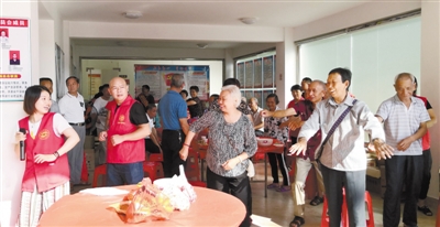 9月8日上午,来自连城县城区、连南和朋口的13位义工,来到朋口朋来社区开展“阳光相伴·爱暖空巢”关爱空巢老人活动。40多名社区老人,在县义工协会会长李海霞的主持领操下,和着愉悦的音乐,学做优美的洗衣操和其他有趣的游戏,脸上绽放着灿烂的笑容。同时,义工们还为农历八月生日的寿星们,举办集体祝寿活动。图为活动现场一角。 通讯员 周宗胜 江桂连 曹佩东 摄