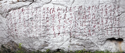 图为临沂王羲之故居北门内毛泽东书写的《兰亭序》碑。
