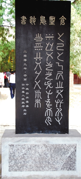 图为陕西渭南白水县史官乡史官村仓颉庙内的《仓圣鸟迹书》碑。