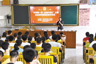 9月5日,永定区人民法院组织青年普法志愿者宣讲团,开展“开学第一课 法治护成长”校园普法大宣讲活动,16名青年干警分别前往七个乡镇(街道)、七所中小学,为3000多名师生送去了预防性侵犯、禁毒防毒、校园欺凌、校园安全、诚实守信等多项内容的法治课,为预防青少年犯罪、护航青少年健康成长筑牢法治屏障。 通讯员 陈立烽 李汉臣 摄