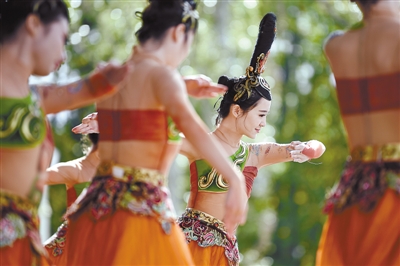 9月14日,在俄罗斯首都莫斯科,舞者在“中国文化节”庆祝活动上表演。为庆祝新中国成立70周年和中俄建交70周年,“中国文化节”庆祝活动14日在俄罗斯首都莫斯科的国民经济成就展览馆开幕,主题是“中国:伟大遗产和新时代”。 新华社发