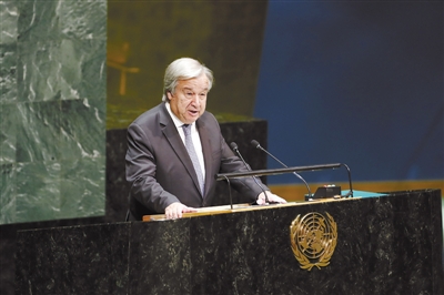 9月16日,在位于纽约的联合国总部,联合国秘书长古特雷斯在第73届联大闭幕式上讲话。第73届联合国大会16日下午在纽约联合国总部闭幕,来自尼日利亚的提贾尼·穆罕默德—班迪宣誓就任第74届联大主席,从第73届联大主席埃斯皮诺萨手中接过象征联大主席权力的木槌。 新华社记者 李木子 摄