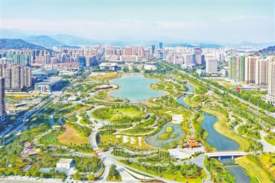 龙岩中心城区龙津湖公园。