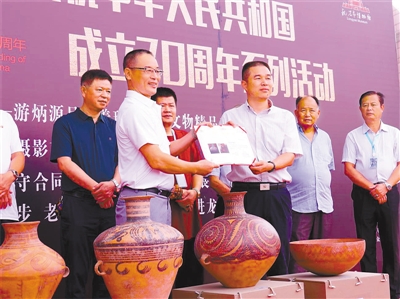 9月15日,我市收藏专家、市收藏协会会长游炳源、副会长吴天养先生向龙岩市博物馆各捐赠了4件距今六七千年前新石器时代的彩陶,市博物馆接受捐品并颁发捐赠证书。同时,为他们专题举办了“上古之光个人收藏彩陶文物精品展”。图为彩陶捐赠仪式现场。