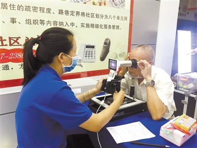 近日,新罗区南城街道莲东社区携手某眼科医院开展“走进社区、爱心义诊”活动。此次义诊共为68位居民提供检查,发放眼健康宣传材料80余份。图为义诊现场。