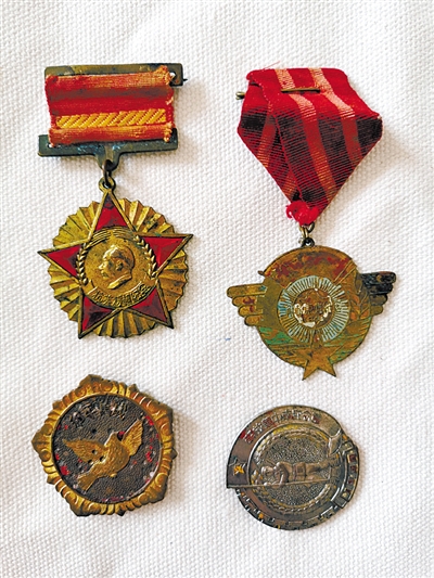 图为范炘昌仅存的四枚军功章。