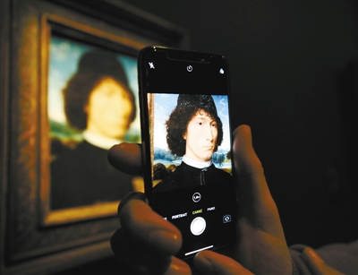 10月22日,在法国巴黎卢浮宫,一名记者在达·芬奇绘画生涯回顾展媒体预展上拍摄。今年是文艺复兴巨匠莱昂纳多·达·芬奇逝世500周年,法国巴黎卢浮宫将从10月24日起举办达·芬奇绘画生涯回顾展。特展将持续至2020年2月24日。本次特展展出了卢浮宫馆藏的《岩间圣母》《美丽的费隆妮叶夫人》《施洗者圣约翰》和《圣母子与圣安妮》等达·芬奇作品。此外,意大利、英国和美国的博物馆还出借了他们珍藏的达·芬奇真迹。同时展出的还有《最后的晚餐》等作品的临摹作品。 新华社记者 高静 摄