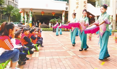 24日,龙岩实验幼儿园举行“龙岩山歌戏传承保护(教学)基地”授牌仪式暨山歌戏进校园活动,来自龙岩山歌戏传习中心的演员们为老师和孩子们献上了一场精彩纷呈的视听盛宴。 通讯员 温连光 陈萍 摄