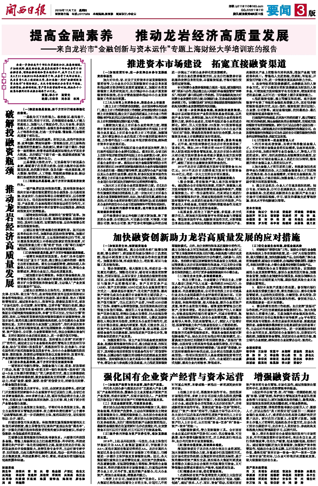 破解投融资瓶颈 推动龙岩经济高质量发展