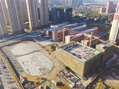 龙岩实验小学分校东山校区位于天星路南侧、龙地华庭东侧,东临西翠路,南临董邦小区,项目用地4.2009公顷,办学规模为48个教学班,2160个学位,项目被市政府列入“应急性重点教育项目”的6所学校“重中之重”项目之一,自3月初开建以来便马不停蹄地加快施工建设。据悉,项目7座教学楼、1座综合楼和宿舍楼已经封顶,教学楼外墙已施工完毕,并正加紧进行内部装修,运动场也崭露雏形。明年秋天将以全新的姿态迎接大批孩子入学。图为日前该校全景。 记者 傅长盛 摄