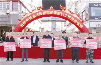 近日,永定区退役军人事务局联合海尔集团统帅电器在城区南门商贸广场开展拥军优属福利工程捐赠活动。38位退役(现役)军人家庭每人获赠一台价值900元的全自动洗衣机。同时,还向全区退役(现役)军人家庭每户发放一张价值300—500元家电补贴福利卡共1.5万张。 通讯员 刘琦 刘梦颖 摄