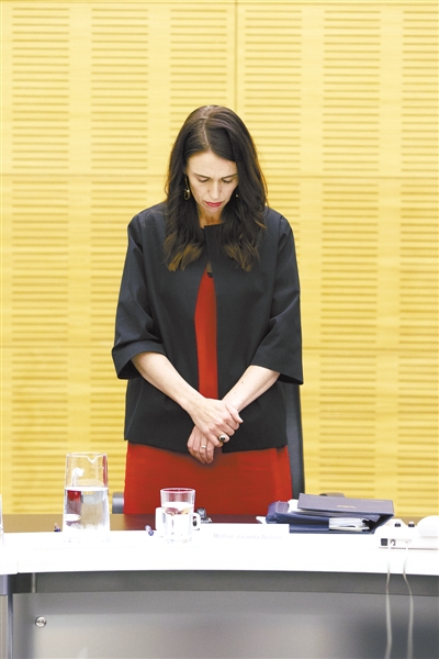 12月16日,在新西兰首都惠灵顿,新西兰总理阿德恩在出席内阁会议时默哀。当地时间16日14时11分(北京时间16日9时11分),新西兰全国为怀特岛火山喷发遇难者举行一分钟默哀仪式。新西兰总理阿德恩在出席内阁会议时与内阁成员一起默哀。