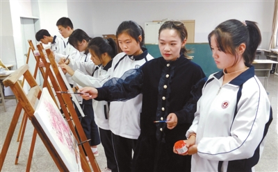 近日,上杭县实验中学的美术老师在指导学生学画。记者 曾志明 摄
