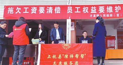 上杭县才溪司法所联合多部门开展根治欠薪专项普法。他们组织法律顾问、法律服务工作人员以及普法宣传志愿者,依托法治宣传文化阵地,利用微信、宣传栏、LED屏等平台,加强典型案例的宣传,同时分赴集镇、工地、企业开展了全方位、多角度宣传活动,形成了为农民工讨薪的强劲声势。12月以来,共开展2次专题普法宣传活动,惠及群众400余人。 通讯员 林凤 摄