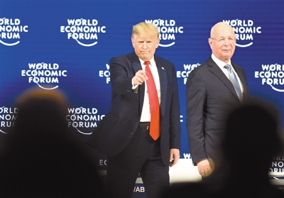 1月21日,在瑞士达沃斯,美国总统特朗普(左)和世界经济论坛创始人兼执行主席克劳斯·施瓦布出席世界经济论坛2020年年会。当日,在瑞士小镇达沃斯,美国总统特朗普出席世界经济论坛2020年年会,并发表特别致辞。 新华社记者 郭晨 摄