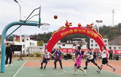 为了迎接新春佳节的到来,丰富村民的业余体育生活,21日,上杭县白砂镇举办了“春节杯”篮球赛,吸引了16支队伍参加,比赛现场热闹非凡,营造了积极向上的体育文化氛围,展现了白砂镇人民群众良好的精神面貌。图为激烈的比赛现场。