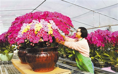 16日,在新罗区红坊镇倒流水村的新兴兰苑蝴蝶兰种植基地,上万株蝴蝶兰姹紫嫣红、绚彩绽放,员工们正忙着将蝴蝶兰成品花组盆、装箱,准备销往全国各地。据了解,该基地共拥有智能温室大棚8000平方米,蝴蝶兰品种40多个,年产蝴蝶兰成品花和中、小苗各15万株,产值达400多万元。 通讯员 温连光 谢小艳 摄
