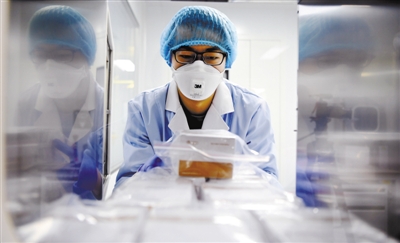 1月27日,在天津金匙医学科技有限公司,科研人员递送成品检测试剂盒。 1月26日,天津首批针对新型冠状病毒感染的肺炎的“2019-nCoV病毒检测试剂盒”共计1万人份已发往武汉。这些试剂盒经过相关部门检测合格后,将用于一线检测。 新华社记者 马平 摄