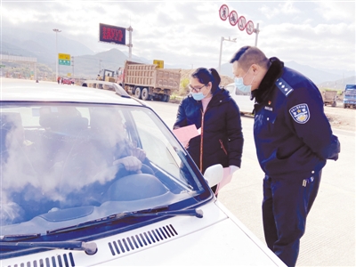 连日来,连城县姑田镇镇村干部、派出所民警深入辖区向群众宣传科学防控新型冠状病毒感染的肺炎疫情科普知识,劝导群众做好佩戴口罩及个人卫生等防护工作及有关注意事项,过一个平安祥和的春节。图为派出所民警与镇干部在长深高速姑田出入口,向过往司机发放防控疫情宣传材料。 通讯员 周宗胜 罗丽娟 摄