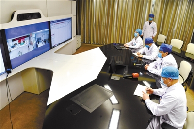 2月1日,河南省人民医院专家团队在互联智慧分级诊疗医学中心为范县人民医院提供远程会诊。近日,河南省人民医院借助互联网分级诊疗协同平台和互联智慧健康服务院线上系统,推出新型冠状病毒感染的肺炎线上咨询服务门诊。该线上门诊提供远程会诊指导、团队式线上门诊服务、卫生健康与疫情防治知识科普宣传等。 新华社 发