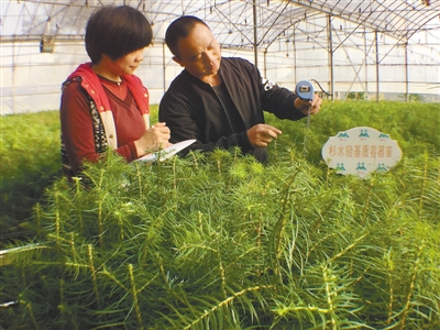 近日,漳平五一林场马尾松研究中心的技术员林文奖和陈惠敏在育苗基地察看苗木长势。春节对他们来说却是另一番喜庆,去年4月开始培育的70万株马尾松、杉、柳杉、福建柏的苗木长势极佳,很多都有30多厘米高了,可以满足山场造林4000多亩。他们采用轻基质容器育苗技术,育出来的种苗可降低运输成本,移栽时不用撕袋子,根系完整,不受伤,造林不受季节限制,成活率接近100%。 记者 赖韦元 通讯员 陈俊毅 摄
