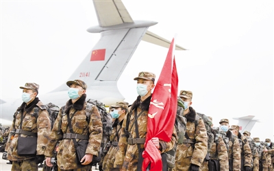 2月2日,空军出动8架大型运输机空运军队支援湖北医疗队抵达武汉天河机场。 新华社记者 程敏 摄