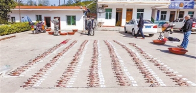 2月4日,笔者从连城县公安局森林分局获悉,该县成功捣毁一非法野生动物经营窝点,共查获野生动物冻品57.5公斤。 为严防新型冠状病毒感染的肺炎疫情,阻断可能的传染源和传播途径,连城森林公安联合县林业局、县市场监督管理局、县农业农村局等执法部门,从1月23日起,对全县农贸市场、花鸟市场、酒楼会所、农家乐、饲养繁育场所非法经营、交易野生动物行为进行了清查整治,发放宣传材料500余份。通过广泛宣传,获取到举报线索一条。 连城森林分局缜密侦查,于1月30日果断出击,对位于莲峰镇新兴村一非法经营野生动物窝点进行搜查,当场查获飞狸2头、鸟类285只、蛇类10条、蛙类6只(以上均为冰冻死体)和竹鼠3只(其中活体2只、冰冻死体1只)。经称重,野生动物冻品重量达到57.5公斤,案值为八万余元。 经查,曾某在未申请办理野生动物经营许可证的情况下,于2019年3月至8月期间到连城县北团、四堡、朋口、宣和等乡镇及清流等地非法经营野生动物。目前,曾某因涉嫌非法经营罪已被依法采取刑事强制措施,案件仍在进一步办理之中。 (通讯员 黄水林 张铃)