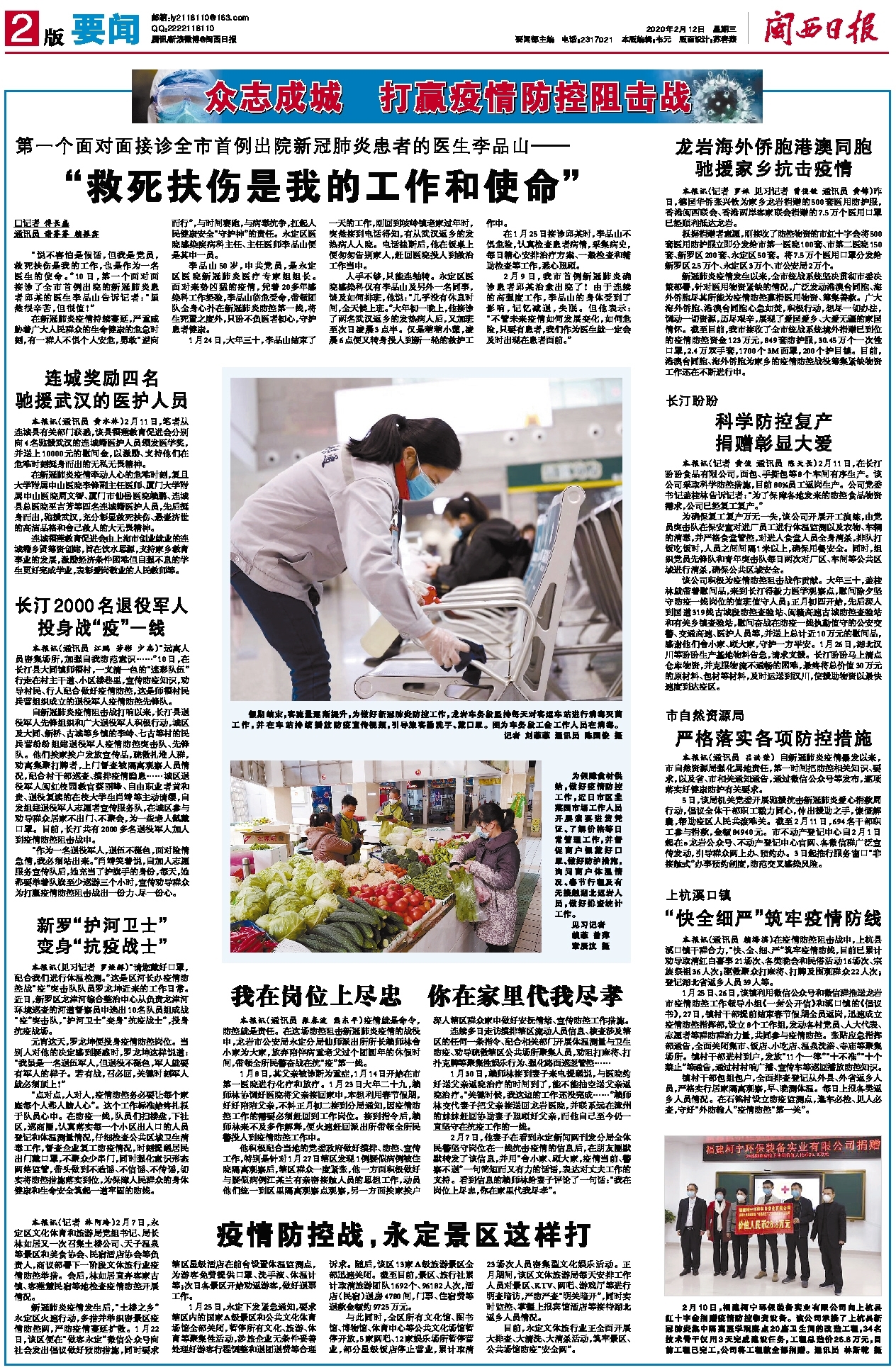 长汀2000名退役军人投身战“疫”一线