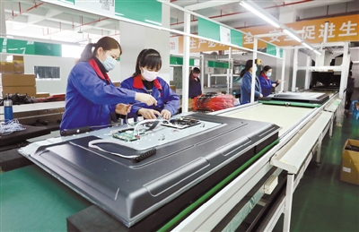 2月17日,在连城工业园区达米拉数码科技有限公司,工人们在生产线上组装生产LED液晶智能电视。该公司是福建省唯一一家液晶智能电视生产企业,总投资3.5亿元,建成年产80万台液晶电视生产线。自2月10日复工以来,在全面落实疫情防控措施的基础上,赶工生产出口订单。目前,连城重点培育主导产业、落户工业园区的光电新材料企业已复工22家,复工率达八成。 通讯员 黄水林 摄