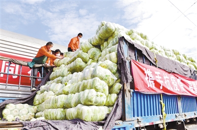 2月17日,工作人员装运蔬菜。当日,福建省援助武汉的首批300吨蔬菜,搭乘中铁特货冷链专列由福州东站出发。据了解,福建省通过多部门联合,在省内12个优质蔬菜生产基地组织总计600吨各类蔬菜,于17、18日分两批驰援武汉。 新华社记者 林善传 摄