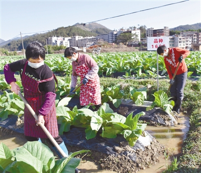疫情防控到了最吃劲的关键阶段,近日又遇寒潮袭击,永定烟草部门一手抓抗疫、一手抓抗冻,基层烟技员迅速下沉到田到片,把气象预警信息、防寒防冻措施第一时间通知到每户烟农,把冻害影响降到最低。图为近日烟农在烟田作业。