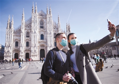 2月24日,在意大利米兰,人们戴着口罩在大教堂前自拍。意大利政府24日宣布,截至当地时间24日21时,新冠病毒感染病例数量升至229例,其中有7个死亡病例。目前被感染人群中,27人在重症监护室接受治疗,101人入院接受普通治疗,94人居家隔离。据悉,大部分病例出现在意大利北部的伦巴第大区,有关地区已采取了暂时关闭学校等措施。