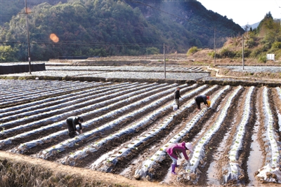 近日,在漳平市新桥镇双溪村烟草种植基地,烟农正抓住晴好天气,对刚种植的烟苗进行施肥。为保障春耕春种与疫情防控两不误,新桥镇积极采取措施督促烟叶生产工作,通过对群众加强宣传引导,在各村设立检测点和检查人员,要求烟农分批、分次,不聚集、不扎堆,戴上口罩进行劳作。截至目前,全镇烤烟大田移栽2483亩,全面完成计划种植任务。 通讯员 陈俊毅 林帆 摄