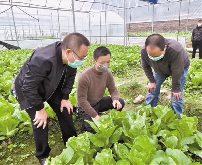 近日,在永定区龙潭镇联中村连片160多亩的蔬菜种植基地里,各类蔬菜长势正旺,菜农们忙着刨土播种。永定区农业农村局的技术员戴着口罩来到田间地头,为种植大户提供技术服务。据了解,永定区在做好疫情防控工作的基础上,不误农时,组织200多名农业技术员深入一线开展农事指导,并提供电话、网上咨询服务,落实春冬蔬菜种植面积达4.6万亩。同时,全面开放各个农资供应点,保障春耕生产有序进行。图为农业技术员(右)现场为蔬菜种植大户传授种植技术。 通讯员 刘琦 摄