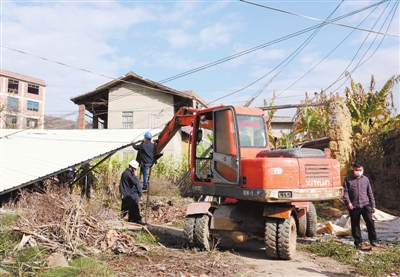 25日,永定区坎市镇联合国土资源、城市管理、公安、电力等部门人员,对文馆村文段“两违”建设开展依法拆除行动,共拆除3处、总面积约600平方米的“两违”建设。该镇坚持严管严控“两违”建设和零星抢种行为,有力地保障了文秀产业园建设用地需求。 记者郭亦斌黄俊见习记者赖菲摄