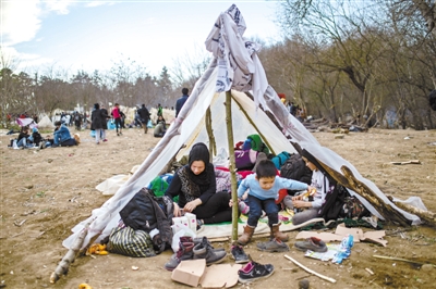 3月2日,在土耳其西北部的埃迪尔内省,非法移民等待通过边境进入欧洲。 土耳其总统府新闻办公室主任法赫尔丁·阿尔通1日发表声明说,2月底以来已有超过8万名非法移民从土耳其西北部边境进入欧洲。未来几天,这个数字可能还会增加。 新华社 发