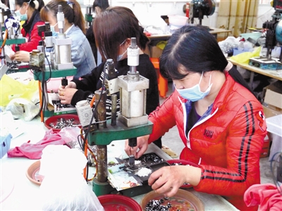 2月28日,永定区湖雷镇群众在当地一家“就业扶贫车间”熟练地加工电子配件。据悉,永定区人社部门通过一手抓疫情防控,一手抓复工用工,积极组织各乡镇(街道)的“就业扶贫车间”复工复产,让更多农村劳动力及早实现就近就地就业,带动群众就业增收,助力巩固脱贫攻坚成果。