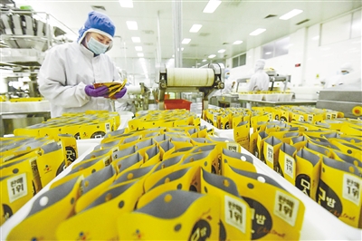 4月18日,在河北唐山遵化市栗源食品有限公司车间,工人在包装栗仁。连日来,河北唐山遵化市在做好疫情防控工作的前提下,积极组织出口企业有序复工复产,赶制海外订单。