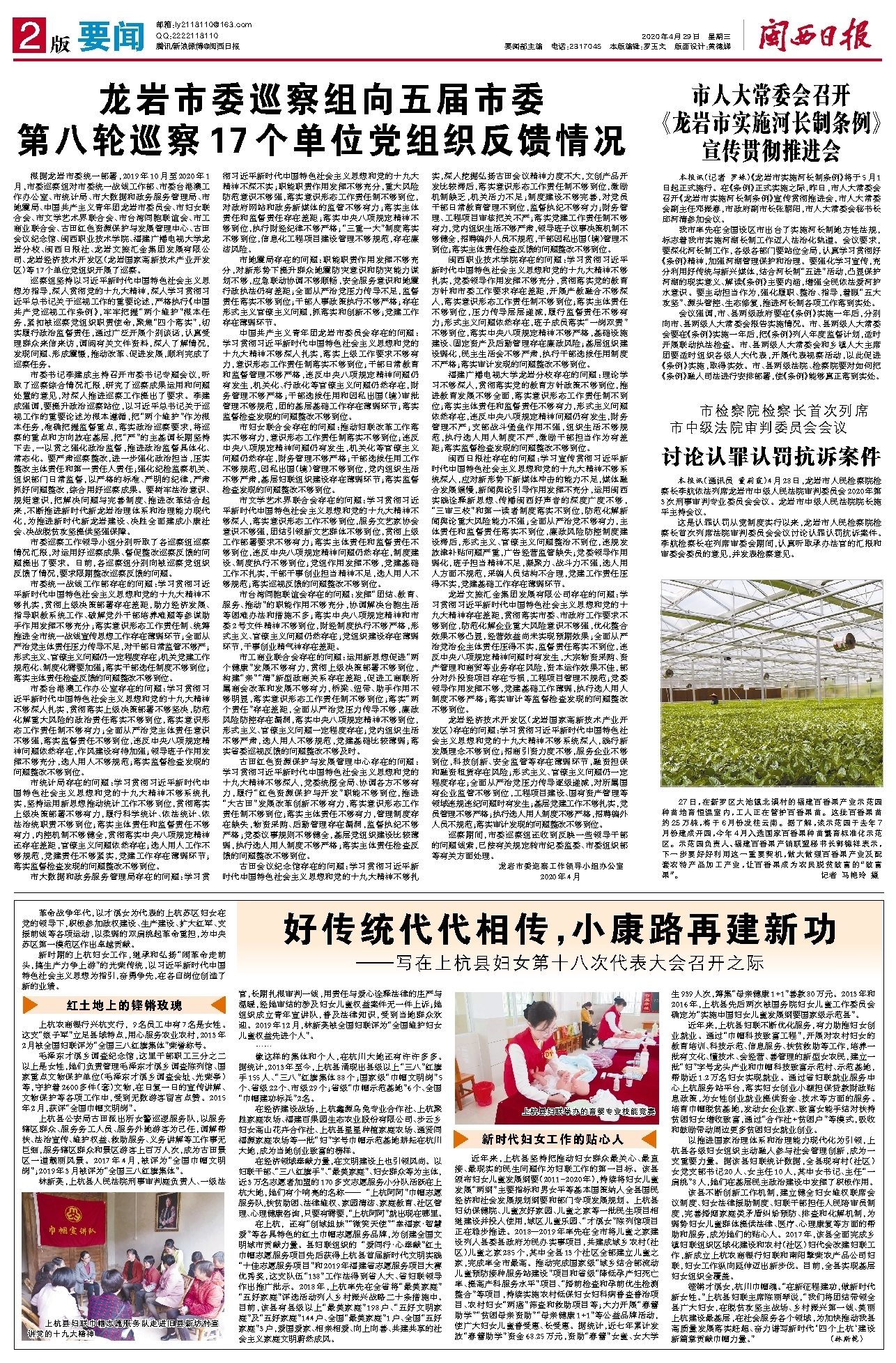龙岩市委巡察组向五届市委第八轮巡察17个单位党组织反馈情况