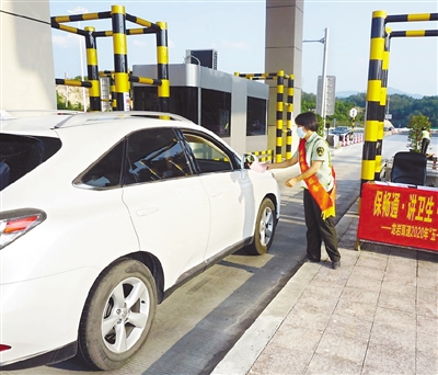 “五一”期间,龙岩高速永定片区积极开展“免费不免责,保畅我先行”志愿服务活动,细化落实措施,优化窗口服务,打造高速公路假期出行良好环境。图为志愿者向过往司机宣传安全行车、防疫知识。