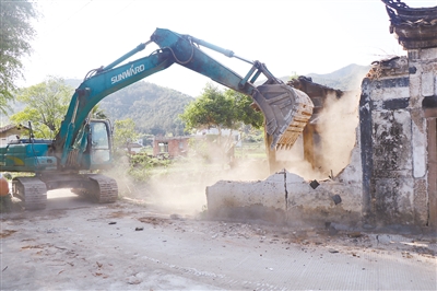 近日,连城县北团镇组织人员对溪尾村的一处“空心房”进行拆除。据悉,经过认真排查与专家鉴定,该房屋常年无人居住、年久失修,墙体出现明显变形、错位,部分墙体已倒塌,存在重大安全隐患,被列为重大安全隐患“空心房”,图为拆除现场。