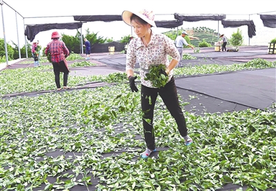 漳平台创园是大陆规模最大的台湾高山茶生产基地,今年开春以来,台创园帮助66家台企复工复产,抓紧开展春季茶园农业生产,确保防疫春耕两不误。图为昨日台创园永福镇后盂村博士园农场在晾晒茶青。